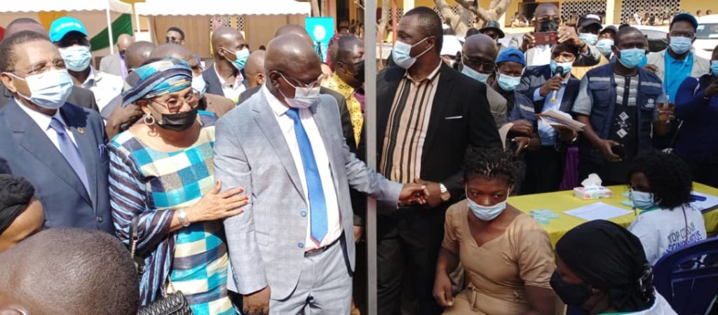 Le Gouvernement guinéen et ses partenaires en ordre de bataille contre le COVID-19, ont procédé ce lundi 10 janvier 2022 au lancement de la campagne de vaccination en milieu scolaire dont la tranche d’âge est de 12 à 17 ans. Cette cérémonie de lancement a eu pour cadre le Lycée 1er mars de Matam dans la commune du même nom, et a été présidée conjointement par le Ministre de la Santé Mamadou Pathé DIALLO et son homologue de l’Éducation Pré-Universitaire et de l’Alphabétisation, Guillaume HAWING.