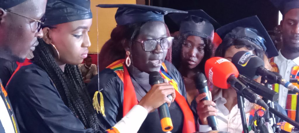 Au nom de ses amis diplômé, Binta Afidou SYLLA a remercié la Fondation des Universités Ahmadou DIENG, les Enseignants, encadreurs et autres personnels impliqués, pour l’accompagnement qu’ils n’ont cessé de faire preuve depuis le début de leurs formations dans cette Institution, jusqu’à ce jour.