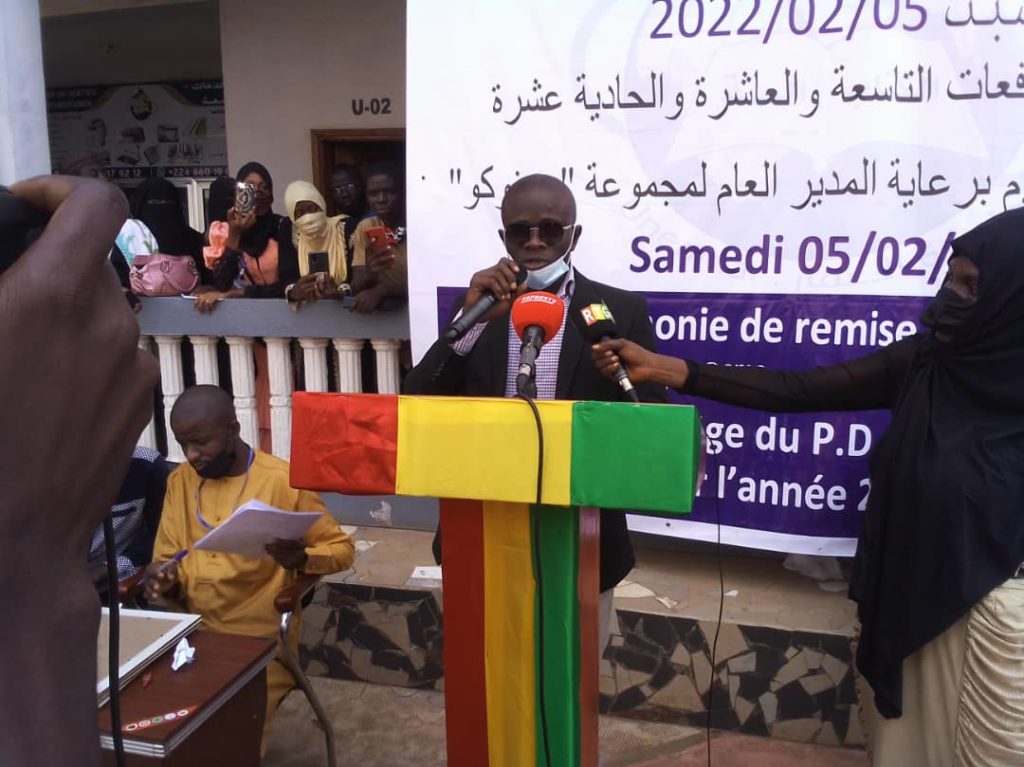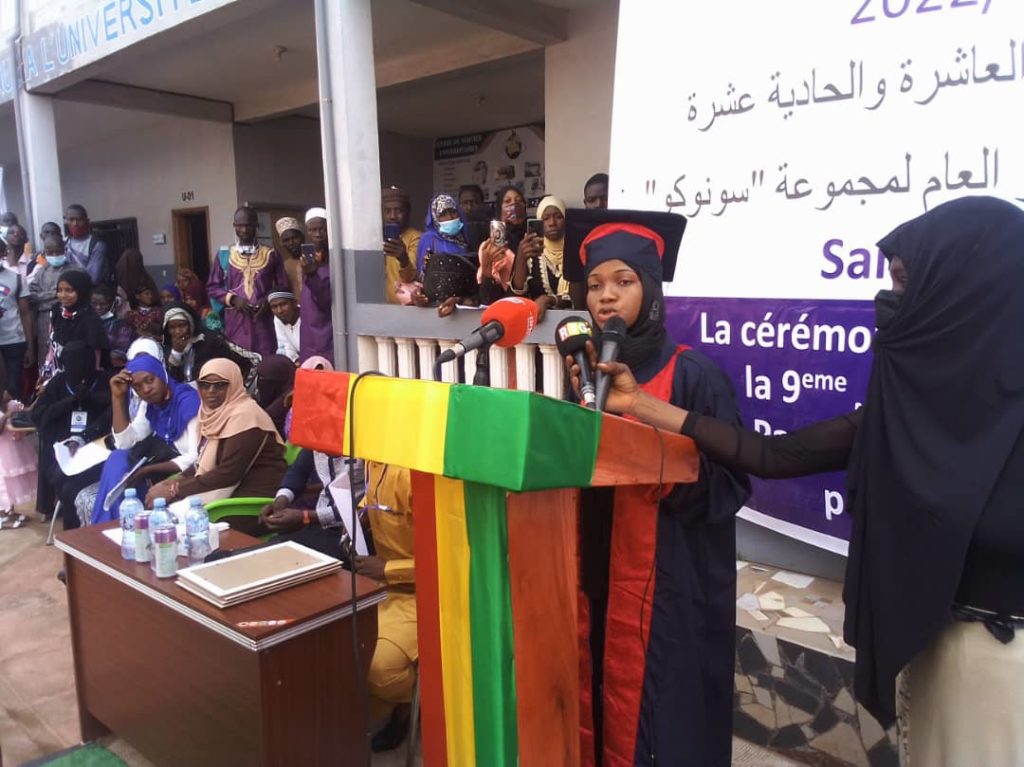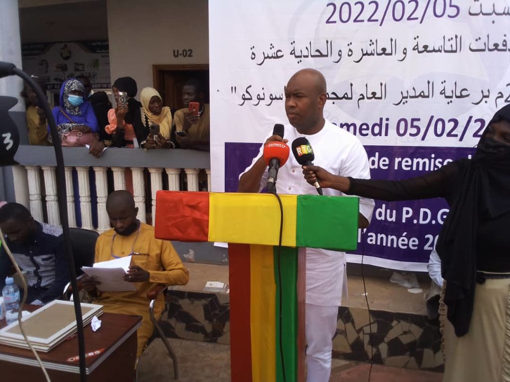 Abdoul Karim DIALLO, représentant du PDG dudit groupe laisse entendre: «Il (Elhadj Mamadou Saliou DIALLO, PDG du groupe Sonoco) est sensible à l’honneur que vous lui avez fait en le choisissant Parain de cette cérémonie. Cet honneur est une sorte de réconfort pour lui, sa famille, ses collaborateurs et tous ses proches. M. le recteur, chers étudiants, qu’ALLAH vous rende au centuple de vos biens faits…», prie-t-il avant d’appeler les nouveaux diplômés à plus de courage.