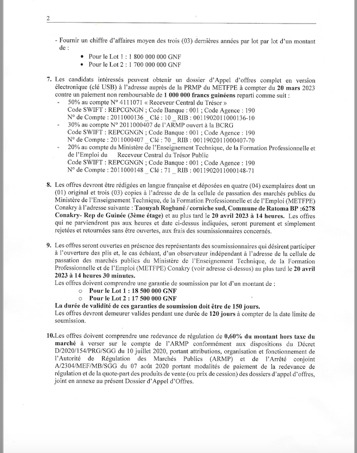 Home APPELS D'OFFRES METFPE: Avis d’appel d’offres pour l’acquisition et la fourniture d’équipements au CFP... APPELS D'OFFRESEcole-ProFormation ProfessionnelleTechnique METFPE: Avis d’appel d’offres pour l’acquisition et la fourniture d’équipements au CFP de Matoto By Ousmane SOW - 18 mars 2023 672 0 SHARE Facebook Twitter Merci de lire les détails de l’appel d’offres sur les fichiers ci-dessous