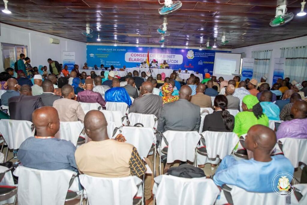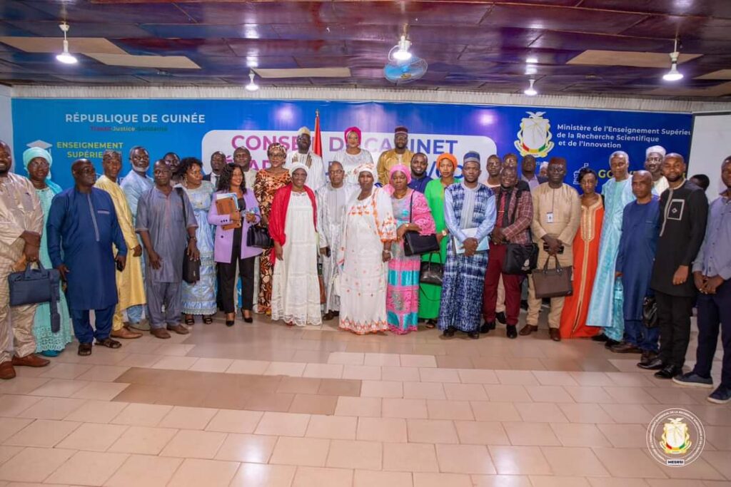 La salle de conférence de l’Université Nongo Conakry (UNC) a servi de cadre, ce 04 août 2023, au deuxième conseil de cabinet élargi aux Institutions d’Enseignement Supérieurs, Institutions de Recherche Scientifique ainsi qu’aux Centres de Documentation et d’Information (IES/IRS/CDI). Une rencontre organisée par le Ministère de l’Enseignement Supérieur, de la Recherche Scientifique et de l’Innovation, qui a connu une forte mobilisations des Institutions d’Enseignements Supérieurs Publiques et Privés et l’Agence Nationale d’Assurance Qualité dans l’Enseignement (ANAQ). L’occasion a été mise à profit par ledit département, ainsi que les représentants des différentes parties prenantes, pour passer en revue le bilan de l’année écoulée et décliner leurs perspectives.