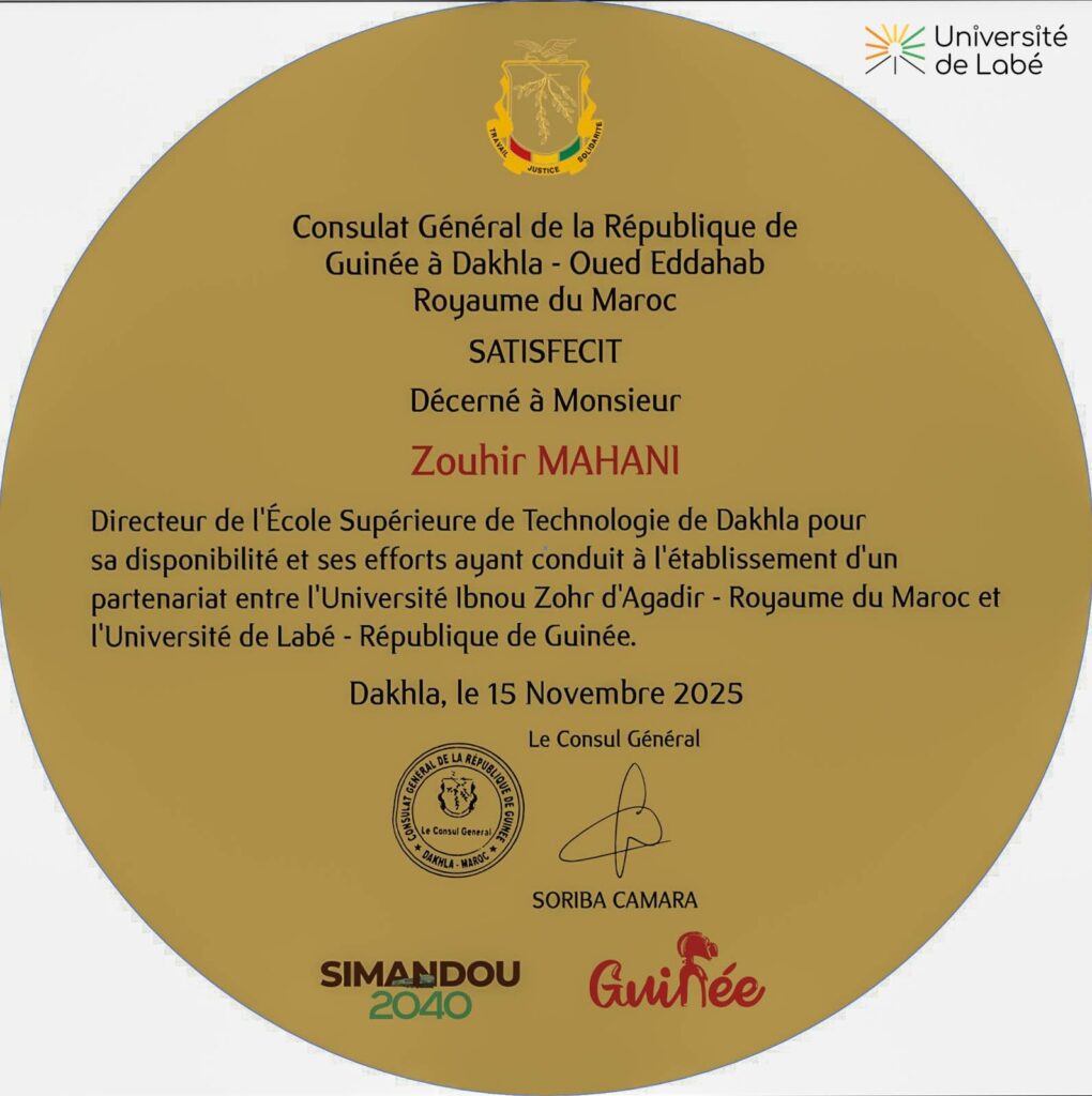 Ce nouvel accord ouvre la voie à une collaboration structurée entre l’Université de Labé et l’École Supérieure de Technologie de Dakhla. Il a été rendu possible grâce à l’implication déterminante de Son Excellence Monsieur l’Ambassadeur de Guinée au Maroc et du Consul Général à Dakhla, dont les efforts diplomatiques ont contribué à finaliser cette coopération majeure.