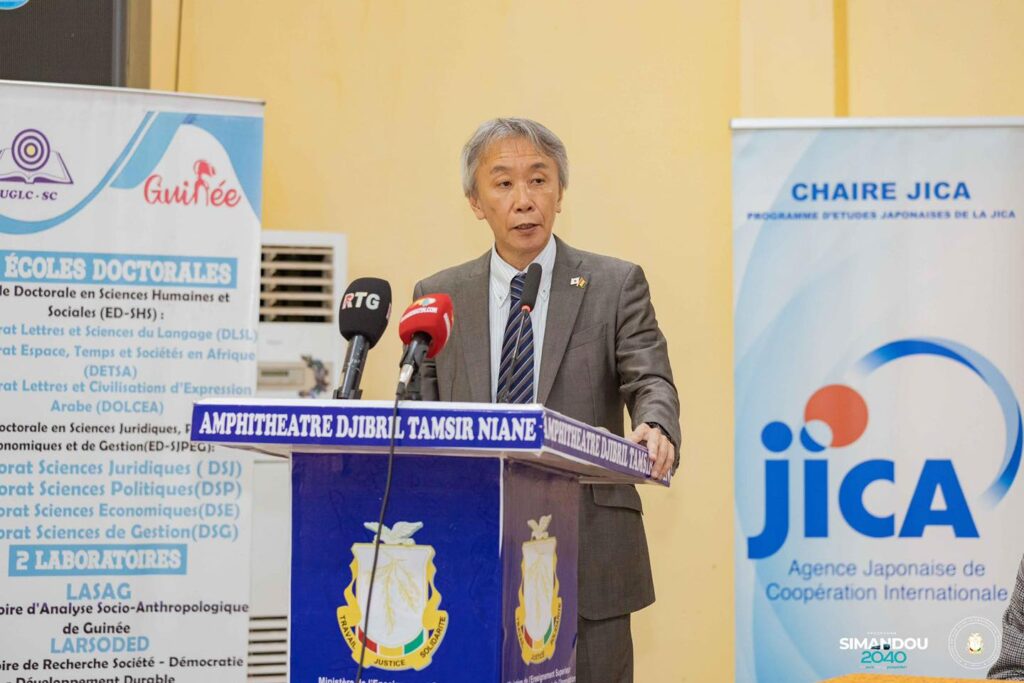 La cérémonie officielle a été présidée par Dr Facinet Conté, Secrétaire Général du Ministère de l’Enseignement Supérieur, de la Recherche Scientifique et de l’Innovation. Il était accompagné de Mme Fatoumata Touré, Cheffe de Cabinet du Ministère du Plan et de la Coopération Internationale, ainsi que de S.E. Kato Ryuichi, Ambassadeur du Japon en Guinée, en présence du représentant de la JICA.