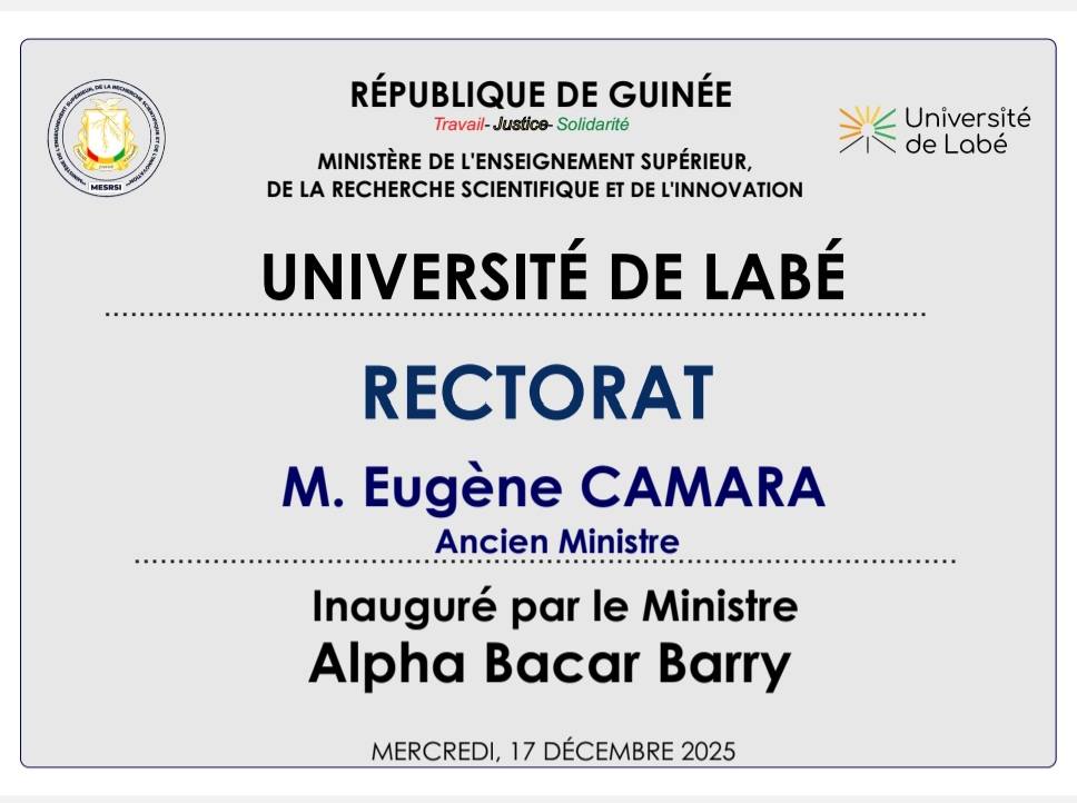 Le ministre de l’Enseignement supérieur, de la Recherche scientifique et de l’Innovation, Son Excellence Monsieur Alpha Bacar Barry, a procédé, ce mercredi, à l’inauguration de plusieurs infrastructures majeures à l’Université de Labé, marquant une étape importante dans la modernisation de l’enseignement supérieur en Guinée.
