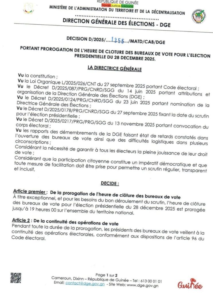 Home Présidentielle 2025 Présidentielle 2025 : prorogation officielle des heures de vote jusqu’à 19 h SciencesPoPrésidentielle 2025Universite Présidentielle 2025 : prorogation officielle des heures de vote jusqu’à 19 h By Universiteactu - 28 décembre 2025 63 0 SHARE Facebook Twitter