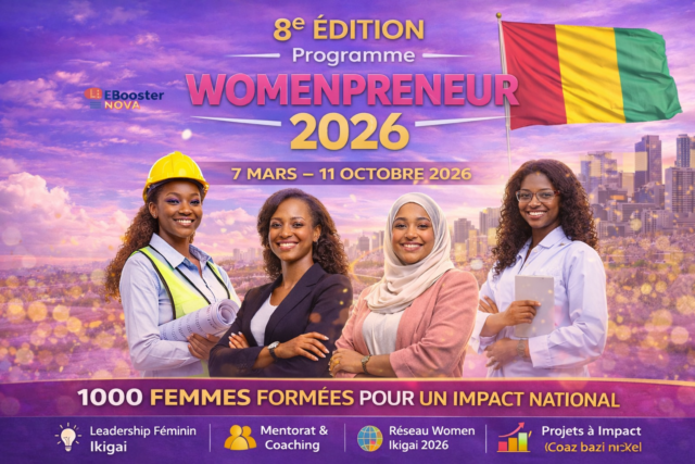 EBooster Nova a annoncé le lancement officiel de la 8ᵉ édition du Programme Womenpreneur, une initiative dédiée à la promotion du leadership féminin, à l’autonomisation professionnelle et à l’émergence des talents féminins en Guinée. Le programme se déroulera du 7 mars au 11 octobre 2026, sous le thème international : « Donner pour Recevoir ».